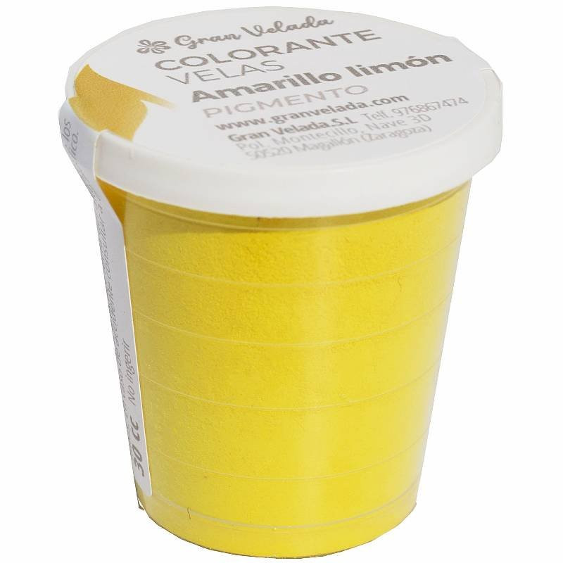 Zitronengelbes Pulverpigment für Kerzen . Es handelt sich um Pigmente, die nicht migrieren, sich nicht zersetzen und den Docht nicht verstopfen. Dies sind hochwertige Pulverfarbstoffe, mit denen Sie im Laufe der Zeit lebendige und dauerhafte Farben erhalten. Diese Farbstoffe zeichnen sich durch eine hervorragende Leistung aus. Um sie zu verwenden, wird empfohlen, eine kleine Menge Pigment in etwas geschmolzenem Wachs zu verdünnen, gut zu mischen und zum Rest des geschmolzenen Wachses zu geben. Sie werden für Kerzen in Behältern empfohlen, da sie zum Dekantieren neigen. Verleihen Sie all Ihren handgefertigten Kerzen Farbe mit der großen Auswahl an Kerzenpigmenten, die Sie in Gran Velada finden! Dieser Farbstoff ist rein und primär, ideal für die Herstellung eigener Mischungen.
