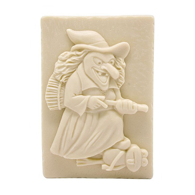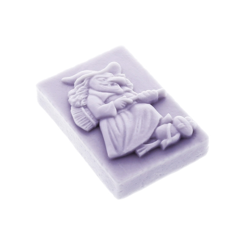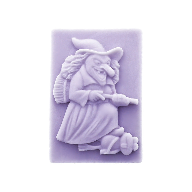 Hexen- und Froschform zur Herstellung von Seifen und Kunsthandwerk. Sie ist aus Silikon und sehr einfach zu verwenden! Sie hat eine rechteckige Form und das Relief zeigt eine Hexe mit ihrem Besen, die auf einen Frosch tritt. Da sie aus Silikon besteht, zeichnet sie sich durch ihre Widerstandsfähigkeit, Antihaftwirkung und Flexibilität aus und ist daher sehr leicht zu verarbeiten. Zur Herstellung von Seife brauchst du diese Form, Glyzerinseifenbasis, Glyzerinseifenfarbe und aromatische Essenzen. Du musst nur die Basis schmelzen, einige Tropfen der Essenz und der Farbe hinzufügen und die Form füllen. Die Herstellung ist sehr einfach und das Ergebnis ist spektakulär, also probier es doch mal aus!