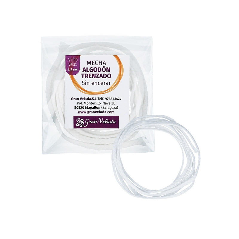 In Gran Velada können Sie ungewachsten geflochtenen Baumwolldocht für Kerzen unterschiedlicher Dicke kaufen. Es wird in Metern verkauft. Es ist ein wesentliches Material bei der Herstellung von Kerzen, da es für das Brennen der Kerze verantwortlich ist, daher ist es wichtig, es richtig zu wählen, damit die Verbrennung korrekt ist.