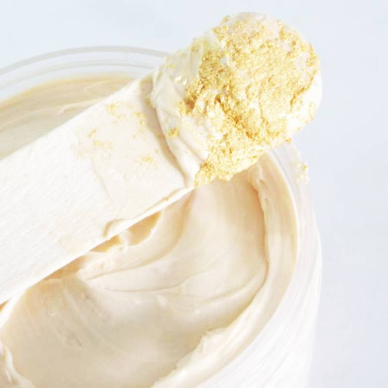 Beginne jetzt, zu Hause eine feuchtigkeitsspendende Mousse zuzubereiten , indem du diese einfachen Schritte befolgst! Der Trick dieses Rezepts besteht darin, mit den Stäbchen gut zu schlagen, um die Mousse-Textur zu erreichen. Was Glimmer betrifft, fügen Sie je nach gesuchter Helligkeit mehr oder weniger hinzu. Glimmer ist von kosmetischer Qualität, deshalb kann er zur Herstellung dieser goldenen Mousse verwendet werden.