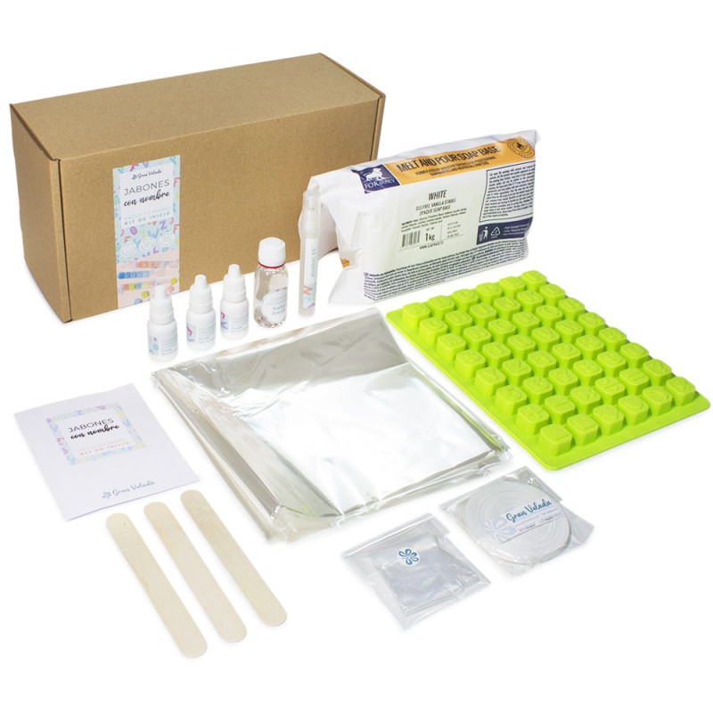 Hacer jabón personalizado será fácil y asequible con este set de Gran Velada. Contiene material de preparación completo así como una  guía impresa paso a paso . Simplemente sigue las instrucciones para hacer tu propio jabón personalizado con tu nombre. Es un regalo ideal para Primera Comunión o Bautismo.