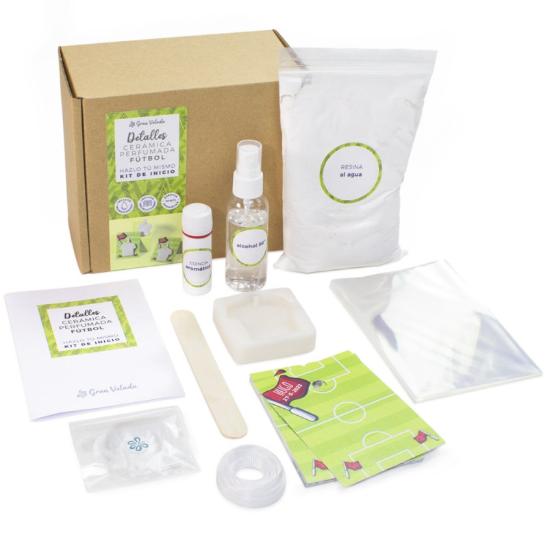 Kit zur Herstellung von duftenden Fußballdetails aus Keramik. Materialien und Anleitungen.