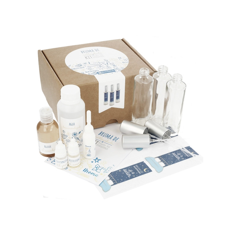 Mit diesem Set ist die Herstellung von selbstgemachtem Kissenspray ganz einfach! Es enthält alle Zutaten, die du benötigst, um es selbst herzustellen. Darunter auch zwei ätherische Öle: Lavendel und Petitgrain, welche Entspannung und Schlaf fördern. Folge einfach der Schritt-für-Schritt-Anleitung, und du kannst deine selbstgemachten Kissensprays ganz einfach und in wenigen Minuten herstellen. Wenn du fertig bist, besprühe dein Kopfkissen und deine Bettwäsche. Es wird dir helfen, dich zu entspannt einzuschlafen. Mach dein selbstgemachtes Kissenspray mit diesem exklusiven Set aus unserem Online-Shop! Mit diesen Zutaten kannst du 150 ml selbstgemachten Kissensprays herstellen. Es enthält auch niedliche Aufkleber, mit denen du deine Glasflaschen dekorieren und beschriften kannst. Das Flaschenmodell kann je nach Lagerbestand und Verfügbarkeit variieren.