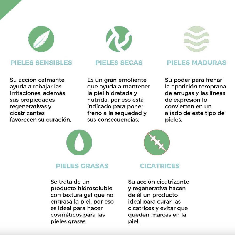 Entzündungshemmend und lindernd: Die Inhaltsstoffe der Aloe helfen, Hautentzündungen zu lindern, die durch Reizungen, Verbrennungen oder andere Hautkrankheiten verursacht werden. Sie ist sehr nützlich für die Formulierung von Kosmetika mit beruhigenden Eigenschaften für gereizte und empfindliche Haut.