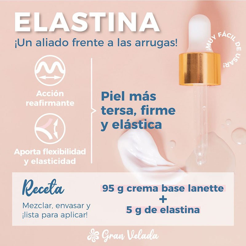 Bei Gran Velada kannst du Elastin von bester Qualität zu einem guten Preis kaufen. Gehe auf www.granvelada.com und bearbeite deine Bestellung bequem, einfach und sicher online. Darüber hinaus findest du hier einen breiten Katalog an Inhaltsstoffen für deine kosmetischen Formulierungen. Verschiedene Zahlungsmethoden. Schneller Versand.