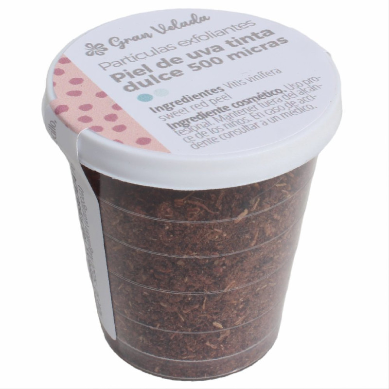 Die 500 Mikron gemahlenen Traubenschalenpartikel sind ideal für die Herstellung Ihrer eigenen Peelings. In diesem Fall handelt es sich um eine süße rote Traubenhaut und ihre Größe (500 Mikrometer) ermöglicht es, sowohl Gesichts- als auch Körperpeelings zu verwenden.