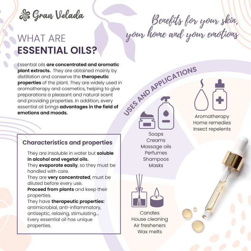 Espliego-Ätherisches Öl für kosmetische Zubereitungen besitzt antiseptische und entzündungshemmende Eigenschaften, die Hautprobleme wie Akne, Sonnenbrand, Dermatitis, Prellungen, Insektenstiche oder Rheuma lindern können. Es kann in Ölen, Cremes oder Wasser gelöst verwendet werden. Espliego-Ätherisches Öl sollte nicht direkt auf die Haut aufgetragen werden.