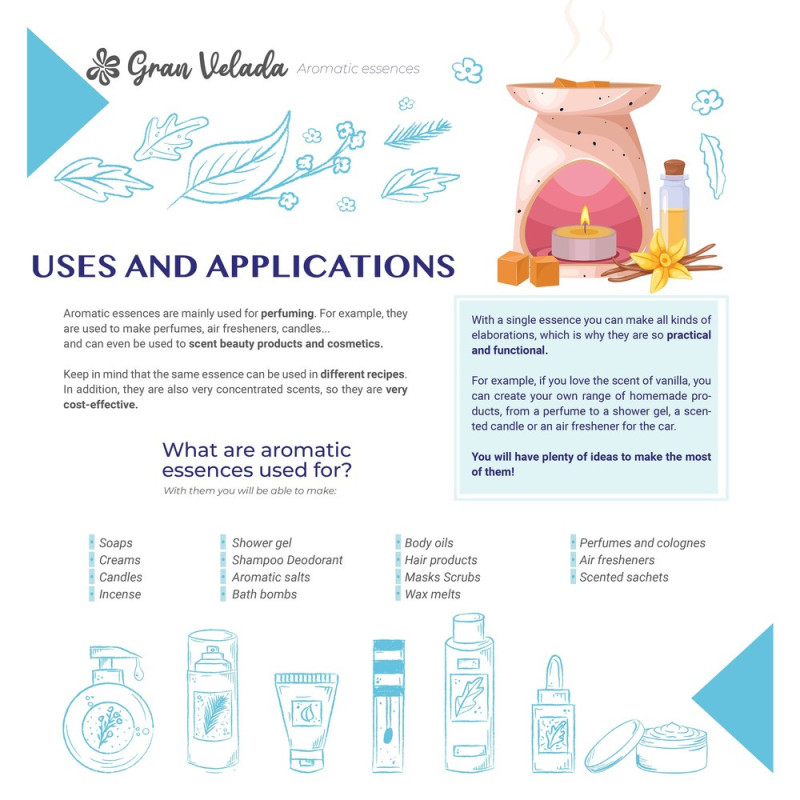 Mit dieser Essenz wird es Ihnen sehr einfach fallen, aromatische weiße Mooskerzen herzustellen, die zu 100% personalisiert sind. Sie benötigen nur diese GV-35-Essenz, einen Parfümfixierzusatz, einen gewachsten Docht und einen Behälter. Alle Zutaten finden Sie hier.
