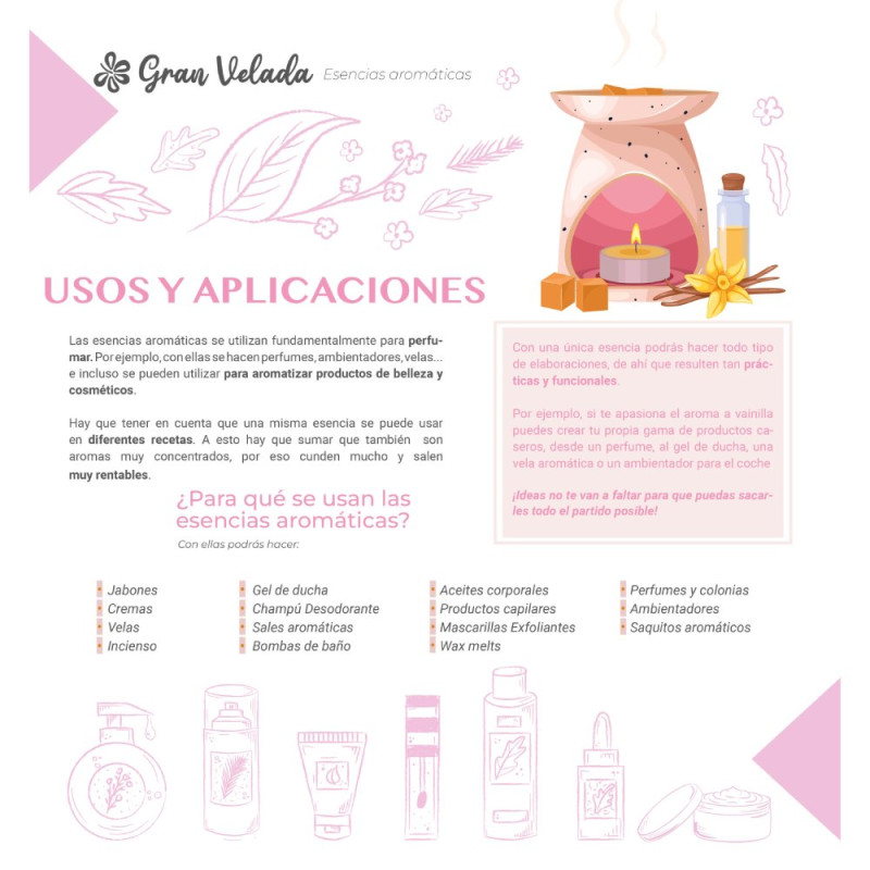 Mit diesem Duft kannst du ganz einfach und schnell deine eigenen Parfums und Raumdüfte herstellen. Perfekt geeignet für Mikado-Diffuser, duftende Keramik, Raumsprays... Und das ist noch nicht alles! Du kannst ihn auch nutzen, um deinen Kerzen einen angenehmen Duft zu verleihen.
