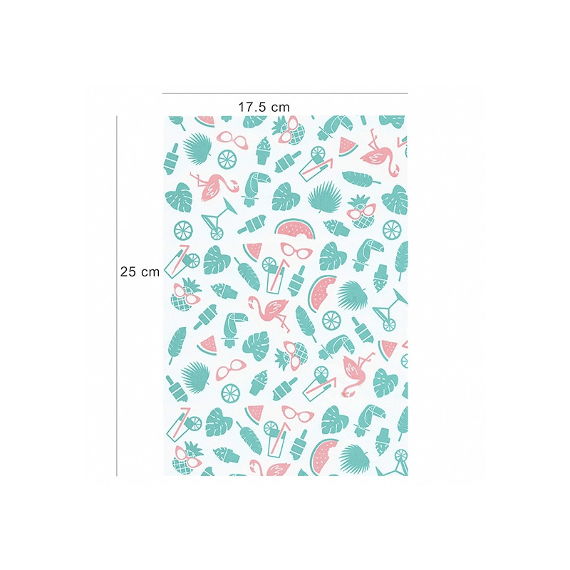 Packungen mit Wachspapierblättern mit tropischem Druck , 17,5x25 cm. Ideal zum Einwickeln von hausgemachten Seifen . Es ist durchscheinend und hat einen schönen tropischen Druck darauf gedruckt. Die Drucke sind farbig, wobei Grün- und Lachstöne vorherrschen. Wachspapierblätter für Seifen sind mit einem speziellen Material ausgestattet, das Feuchtigkeit abweist. Es ist ein hochwertiges Wachspapier, das speziell für die Verpackung von Seifen und vielen anderen Details entwickelt wurde. Mit Wachspapier zum Einwickeln von Seifen erhalten Sie ein Finish von 10 für Ihre hausgemachten Ausarbeitungen. Es ist sehr einfach zu bedienen und lässt sich perfekt mit den Zier- und Bastbändern kombinieren, die Sie in unserem Online-Shop kaufen können. Hier sind einige Ideen , wie man Seifen mit Wachspapier umwickelt. Es wird nach Gewicht verkauft, bereits in Blätter geschnitten, um die Handhabung zu erleichtern.