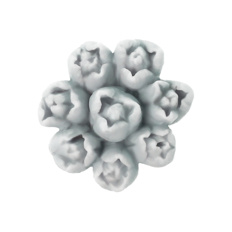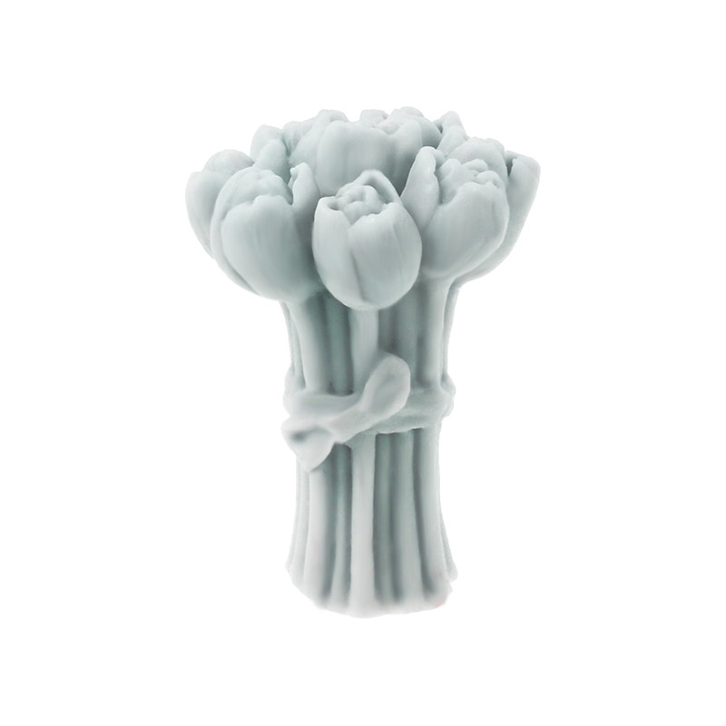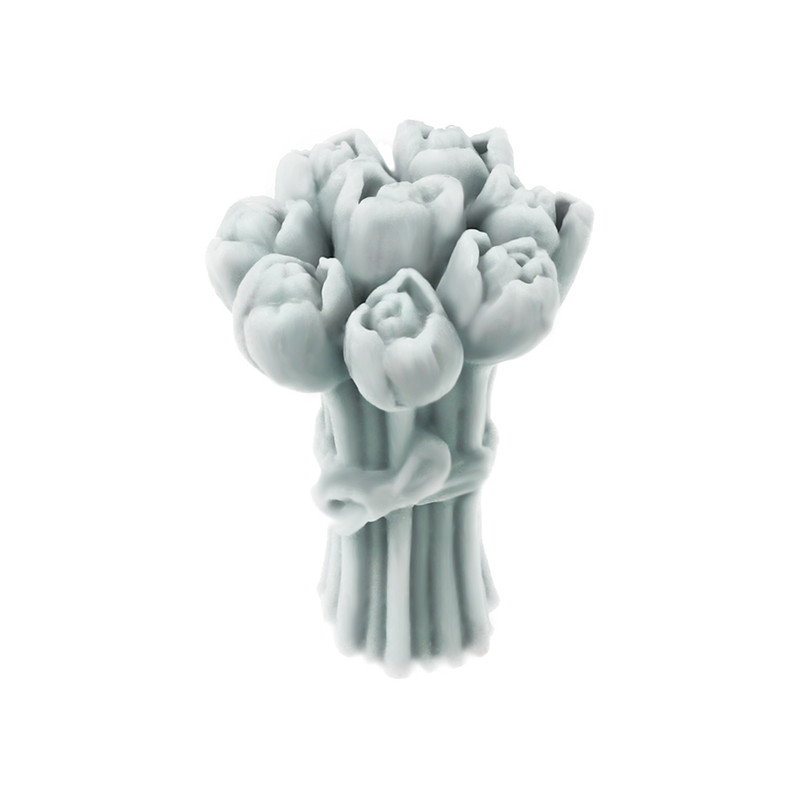 Form Tulpenstrauß zur Herstellung von Seifen und Kunsthandwerk. Sie ist aus Silikon, sehr einfach zu benutzen! Es handelt sich um eine 3D-Form, die einen schönen Tulpenstrauß darstellt. Da sie aus Silikon hergestellt ist, zeichnet sie sich durch ihre Widerstandsfähigkeit, Antihaftwirkung und Flexibilität aus und ist daher sehr leicht zu handhaben. Zur Herstellung von Seife brauchst du diese Form, Glycerinseifenbasis, Glycerinseifenfarbe und aromatische Essenzen. Du musst nur die Seifenbasis schmelzen, ein paar Tropfen der Essenz und der Farbe hinzufügen und die Form füllen. Die Herstellung ist sehr einfach und das Ergebnis ist spektakulär - probier es doch mal aus!