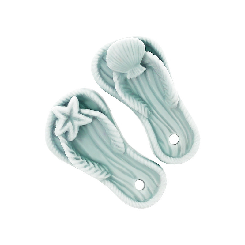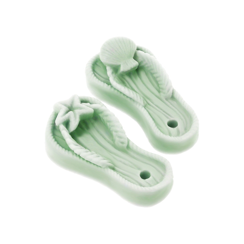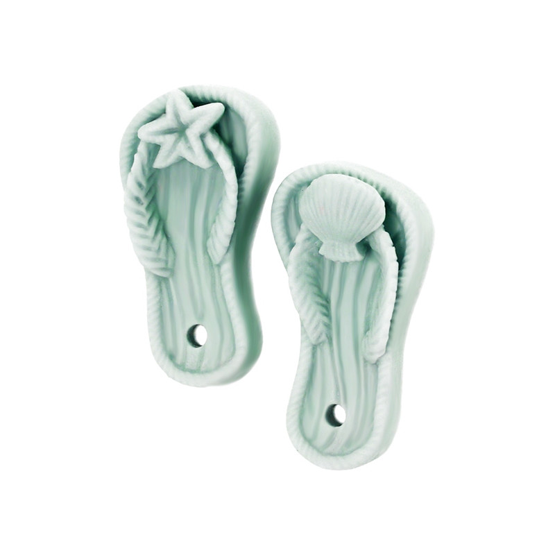 Flip-Flop-Form aus Silikon für die Herstellung von Seifen und Bastelarbeiten, sehr einfach zu verwenden! Die Form hat 2 Vertiefungen, so dass du zwei Flip Flops machen kannst, einen mit einer Muschel und den anderen mit einem Stern. Sie haben auch ein Loch, damit man die fertige Figur aufhängen kann. Da sie aus Silikon besteht, zeichnet sie sich durch ihre Widerstandsfähigkeit, Antihaftwirkung und Flexibilität aus und lässt sich daher leicht verarbeiten. Zur Herstellung von Seife brauchst du diese Form, eine Glycerinseifenbasis, Glycerinseifenfarbe und eine aromatische Essenz. Einfach die Seifenbasis schmelzen, ein paar Tropfen Essenz und Farbstoff hinzufügen und die Form füllen. Die Herstellung ist sehr einfach und das Ergebnis ist spektakulär - probier es doch mal aus!
