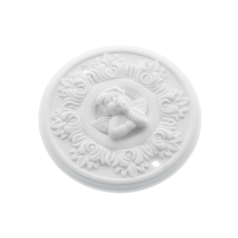 Silikonform, 6,8 cm Durchmesser, ideal für die Herstellung von duftenden Lufterfrischern aus Keramik. Mit dieser Form erhält man ein Medaillon mit einem kleinen Engel in der Mitte, der mit pflanzlichen Ornamenten verziert ist. Der Engel befindet sich in einer nachdenklichen Haltung, sein Kopf ruht auf einem Arm. Diese Form zeichnet sich durch ihre Festigkeit aus. Außerdem ist sie elastisch und nicht klebend, so dass sie sehr leicht zu bearbeiten ist. Neben der Form stehen dir bei Gran Velada alle Materialien zur Verfügung, die du für die Herstellung von Duftkeramik benötigst: Harz auf Wasserbasis, aromatische Essenzen, Pigmente... Du erhältst ideale Details zur Beduftung von Schränken, Schubladen, Schuhregalen...! Sie sehen toll aus und sind kostengünstig herzustellen. Klicke auf mehr Details, um Schritt für Schritt zu sehen, wie man duftende Keramik herstellt.