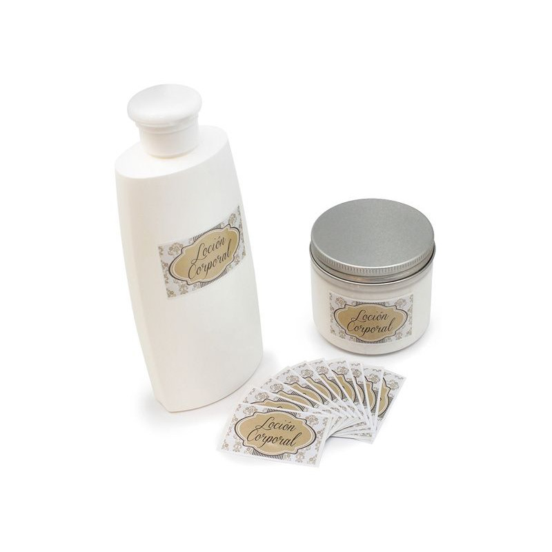 Blister mit 9 Aufklebern für Körperlotion, 5x3,1cm, ideal für die Etikettierung der Körperprodukte, die du zu Hause herstellst. Sie sind in zwei Farben erhältlich: Beige und Lila. Sie vereinen Design und Funktionalität, denn sie sind praktisch und sehr hübsch. Die Aufkleber, die du bei Gran Velada kaufen kannst, zeichnen sich durch ihre Widerstandsfähigkeit und Qualität aus. Sie haften perfekt auf verschiedenen Oberflächen (Karton, Papier, Plastik, Glas, Aluminium...) und sind wasserfest. Hol dir diese Sticker und erhalte die perfekte Verpackung für deine DIY-Kreationen!
