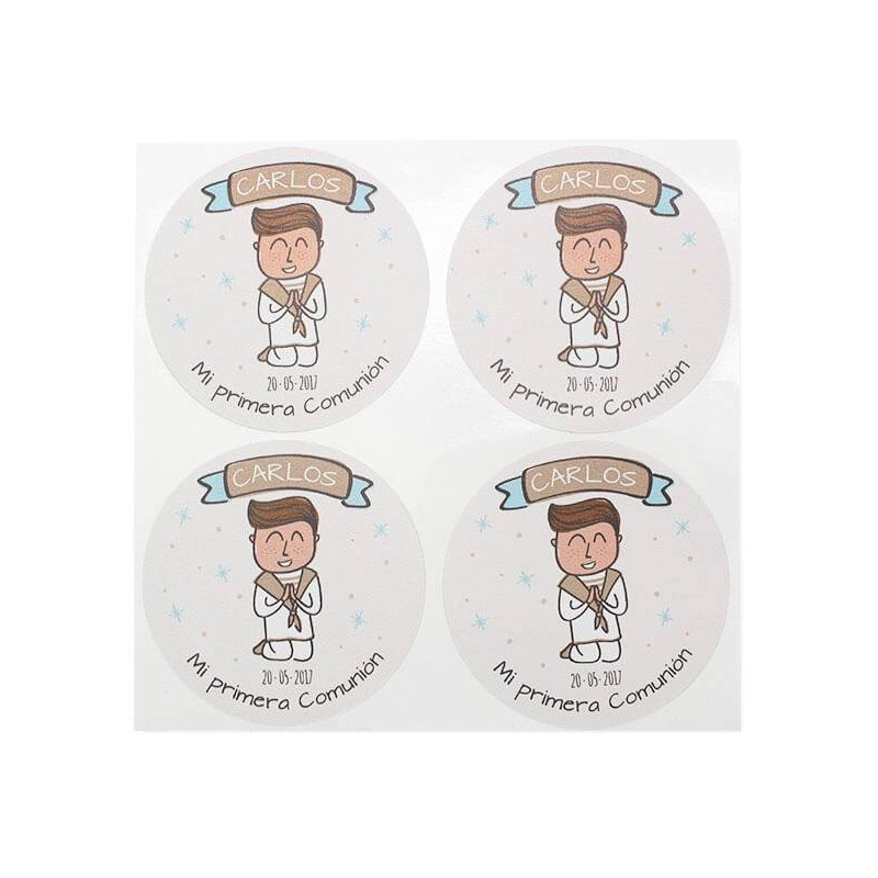 Personalisierte runde Kommunionaufkleber - Junge