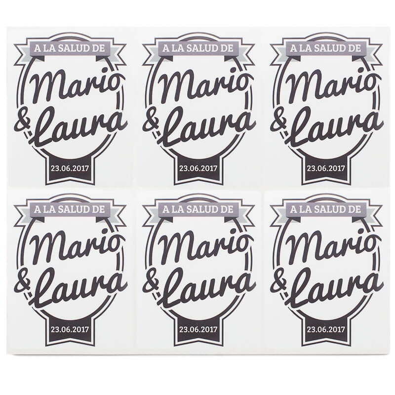 Bei Gran Velada kannst du Hochzeitsetiketten zur persönlichen Gestaltung kaufen. Wähle die benötigte Menge und gib deine Bestellung online auf. Vergiss nicht, uns deine Namen und das Datum der Hochzeit mitzuteilen. Wir drucken sie für dich und schicken sie dir in wenigen Tagen zu.