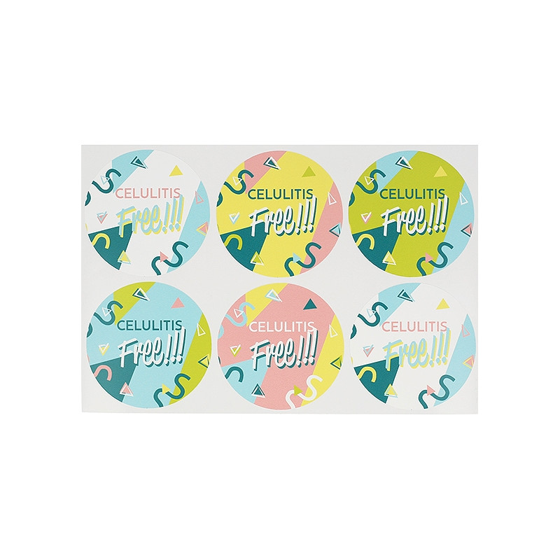 Blister mit 6 cellulitefreien Aufklebern, 6,5 cm, zur Kennzeichnung der Anti-Cellulite-Produkte, die du zu Hause herstellst. Es handelt sich um runde, wasserfeste Aufkleber, auf denen "Cellulite free" zu lesen ist. Sie werden auf Plastikpapier gedruckt und sind originell und lustig. Unsere cellulitefreien Aufkleber haben eine auffällige Farbkombination aus Blau, Gelb und Lachs. Ein exklusives Design aus unserem Online-Shop, das sich durch seine Originalität, Jugendlichkeit, Modernität und Unbeschwertheit auszeichnet. Diese cellulitefreien Aufkleber haften perfekt auf Plastik-, Glas- und Aluminiumbehältern. Hol dir diese Aufkleber und verleihe deinem selbstgemachten Anti-Cellulite-Mittel einen lustigen Touch!