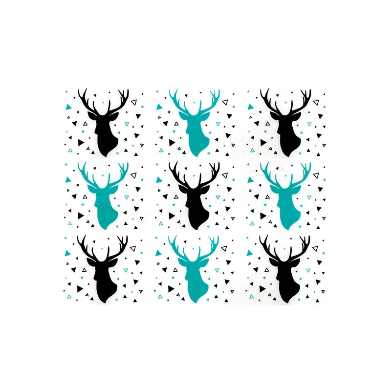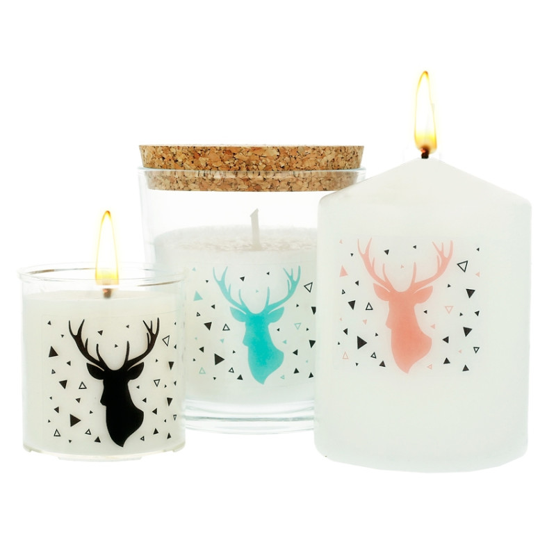 Blister mit 9 Weihnachtsaufklebern mit Rentieren im Format 5,3 x 4,2 cm. Sie sind rechteckig, haben einen transparenten Hintergrund und zeigen die Silhouette eines Rentierkopfes mit dekorativen Dreiecken drum herum. In diesem Fall kombinieren die Aufkleber zwei Farben: Schwarz und Grün. Sie sind ideal für die Herstellung von Kerzen in Polycarbonatbechern. Du wirst ein niedliches und originelles Geschenk haben, und mit den Materialien, die du in unserem Online-Shop kaufen kannst, wird es sehr einfach sein, es zu Hause zu machen. Kaufe diese Weihnachtsaufkleber mit Rentieren jetzt und verpasse deinen Geschenken ein perfektes Finish!