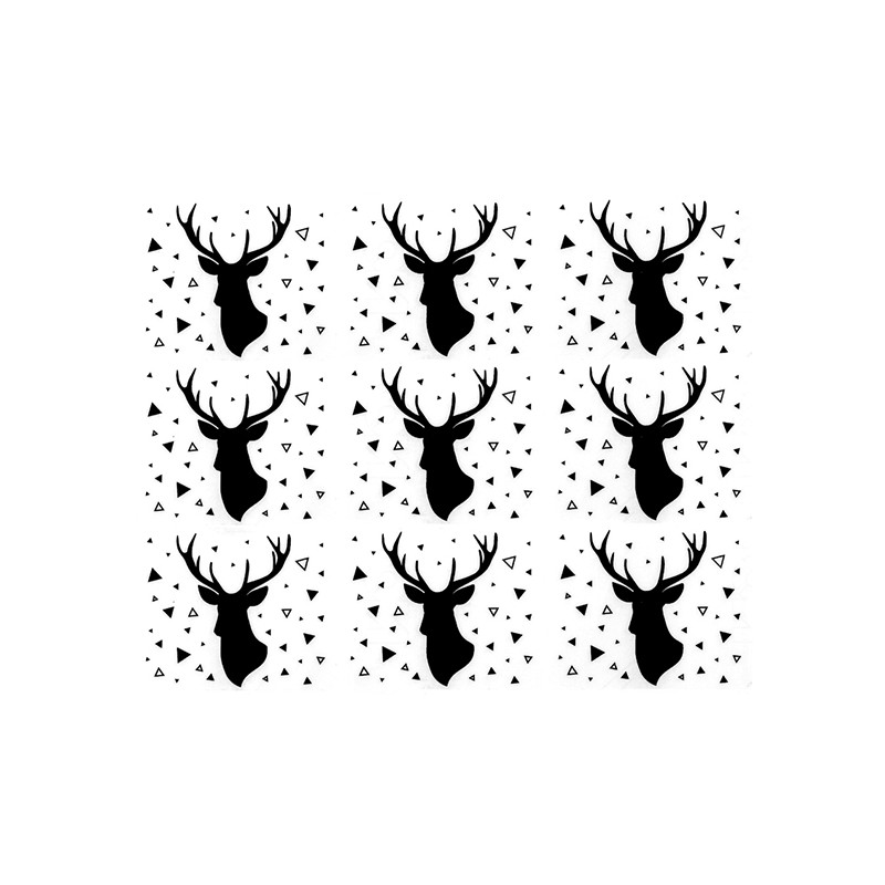 Blister mit 9 Weihnachtsaufklebern mit Rentieren im Format 5,3 x 4,2 cm. Sie sind rechteckig, haben einen transparenten Hintergrund und zeigen die Silhouette eines Rentierkopfes mit dekorativen Dreiecken drum herum. In diesem Fall die Aufkleber sind in Schwarz. Sie sind ideal für die Herstellung von Kerzen in Polycarbonatbechern. Du wirst ein niedliches und originelles Geschenk haben, und mit den Materialien, die du in unserem Online-Shop kaufen kannst, wird es sehr einfach sein, es zu Hause zu machen. Kaufe diese Weihnachtsaufkleber mit Rentieren jetzt und verpasse deinen Geschenken ein perfektes Finish!