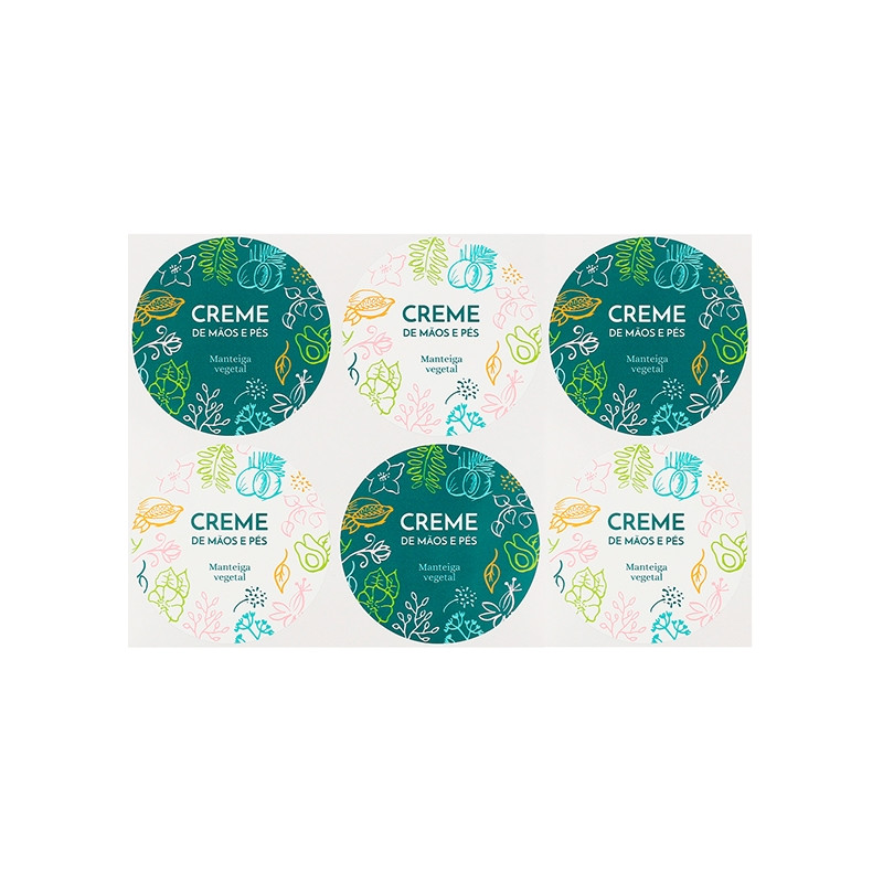 Blister mit 6 runden Aufklebern, 7 cm lang, zur Kennzeichnung der Hand- und Fußcreme, die du zu Hause herstellst. Die Blisterpackung enthält zwei Modelle von Aufklebern: eines mit weißem Hintergrund und eines mit grünem Hintergrund. Sie tragen alle die Aufschrift "Hand- und Fußcreme" und sind mit einem hübschen Pflanzendruck in sanften Tönen verziert. Ein auffälliges und elegantes Design, das deinen DIY-Kreationen das perfekte Finish verleiht. Sie sind exklusiv in unserem Online-Shop erhältlich. Die Aufkleber, die du bei Gran Velada kaufen kannst, zeichnen sich durch ihre Widerstandsfähigkeit und Qualität aus. Sie haften perfekt auf allen Arten von Oberflächen (Karton, Papier, Plastik, Glas, Aluminium...) und sind wasserfest. Hol dir diese Aufkleber und erhalte die perfekte Verpackung für deine DIY-Cremes!