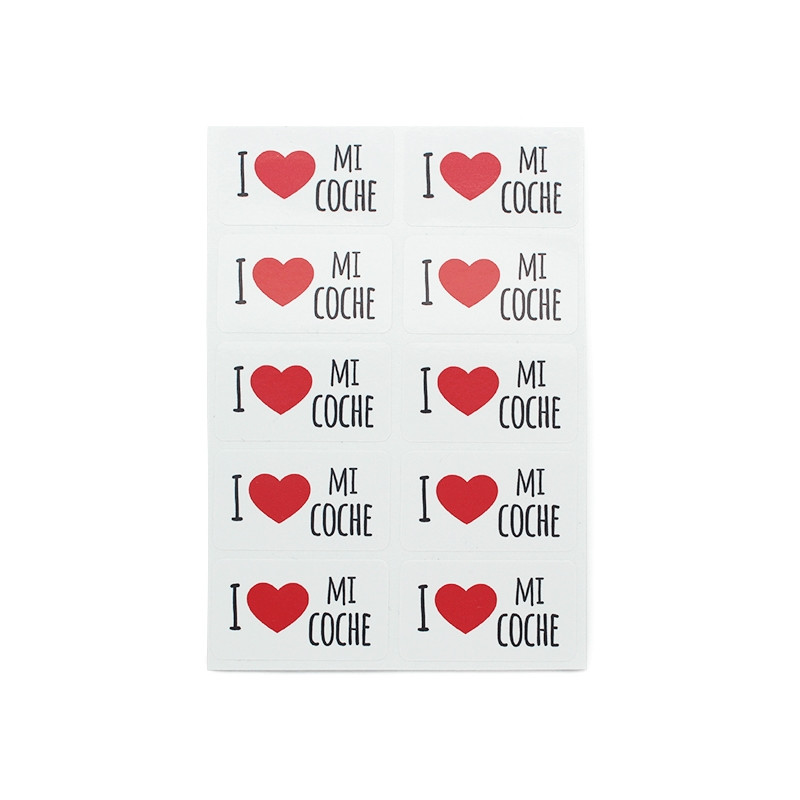 Blister mit 9 „ Ich liebe mein Auto“-Aufklebern, 3,5x2cm, für die Verpackung deiner Auto-Lufterfrischer. Sie sehen toll aus auf den Lufterfrischer-Flaschen, die du auch bei Gran Velada kaufen kannst! Sie sind auf Transparentpapier gedruckt und mit einem roten Herz verziert. Ein modernes und lustiges Design, um deine Auto-Lufterfrischer zu dekorieren. Unsere Lufterfrischerflaschen zeichnen sich durch ihre Stärke und Qualität aus. Sie haften perfekt auf verschiedenen Oberflächen (Karton, Papier, Plastik, Glas, Aluminium...) und sind wasserfest. Hol dir diese Aufkleber und erhalte die perfekte Verpackung für deine selbstgemachten Lufterfrischer!
