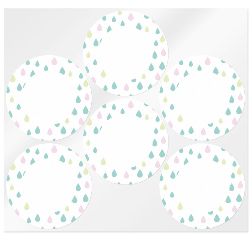 Blister mit 6 Aufklebern mit farbigen Tröpfchen und weißer Fläche zum Beschriften. Sie sind rund, haben einen weißen Hintergrund und sind mit farbigen Tröpfchen in Grün und Rosa verziert. Sie werden dir helfen, die perfekte Verpackung für deine DIY-Kreationen zu bekommen! Die Aufkleber, die du bei Gran Velada kaufen kannst, zeichnen sich durch ihre Widerstandsfähigkeit und Qualität aus. Sie haften perfekt auf einer Vielzahl von Oberflächen (Karton, Papier, Kunststoff, Glas, Aluminium...) und sind wasserfest.