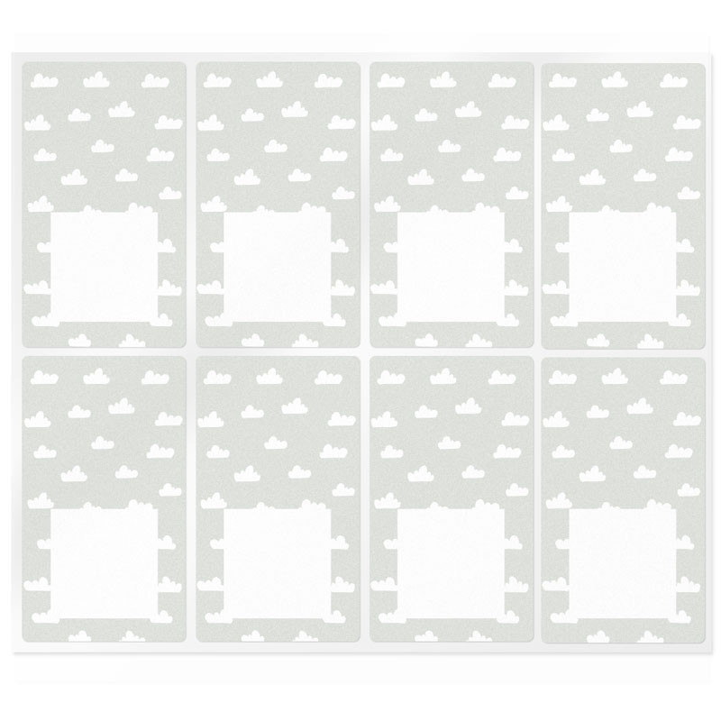 Blister mit 8 Aufklebern mit Wolken und weißer Fläche zum Beschriften. Sie sind rechteckig, haben einen grauen Hintergrund und sind mit weißen Wolken verziert. Sie werden dir helfen, die perfekte Verpackung für deine DIY-Kreationen zu bekommen! Die Aufkleber, die du bei Gran Velada kaufen kannst, zeichnen sich durch ihre Widerstandsfähigkeit und Qualität aus. Sie haften perfekt auf einer Vielzahl von Oberflächen (Karton, Papier, Kunststoff, Glas, Aluminium...) und sind wasserfest.