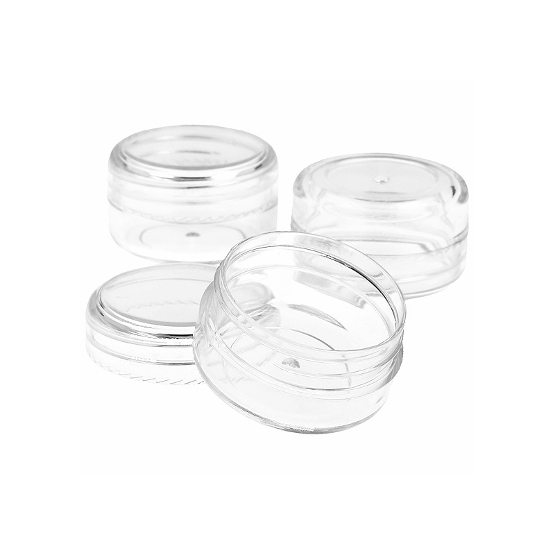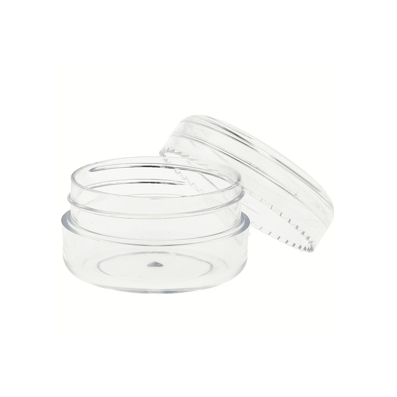 Transparenter Tiegel mit 20 ml, sehr praktisch zum Verpacken von Cremes und Kosmetika aller Art im Miniformat. Die Behälter werden leer verkauft und bestehen aus einem kreisförmigen transparenten Behälter, der von einem Deckel begleitet wird, der die Schraube schließt. Diese Kunststoffbehälter können wiederverwendet und recycelt werden. Dieses Modell eignet sich perfekt zum Verpacken: