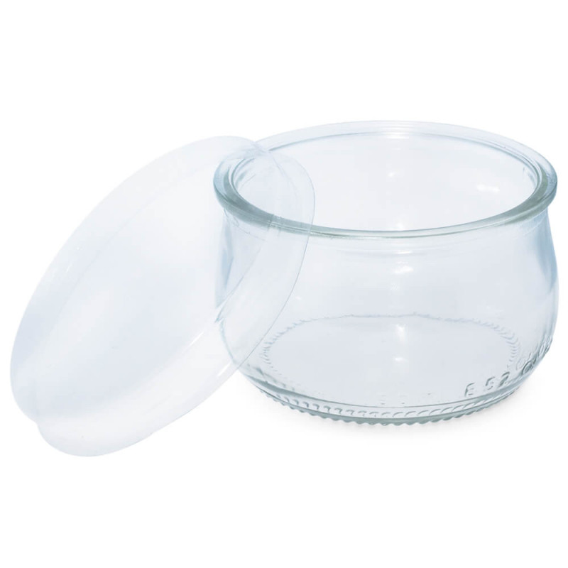 In Gran Velada können Sie Kristallgläser Joghurt kaufen. Dieses Modell verfügt über einen weißen Kunststoffdeckel , der unter Druck gesetzt wird. Es passt perfekt und garantiert so die hermetische Abdichtung. Sowohl der Becher als auch der Deckel können wiederverwendet und recycelt werden, sie sind auch sehr einfach und bequem zu reinigen. Dieses Joghurtglas besteht aus dickem Glas, wodurch es gegen hohe Temperaturen beständig ist, ein Schlüsselfaktor, um Kerzen aus Glas herstellen zu können.