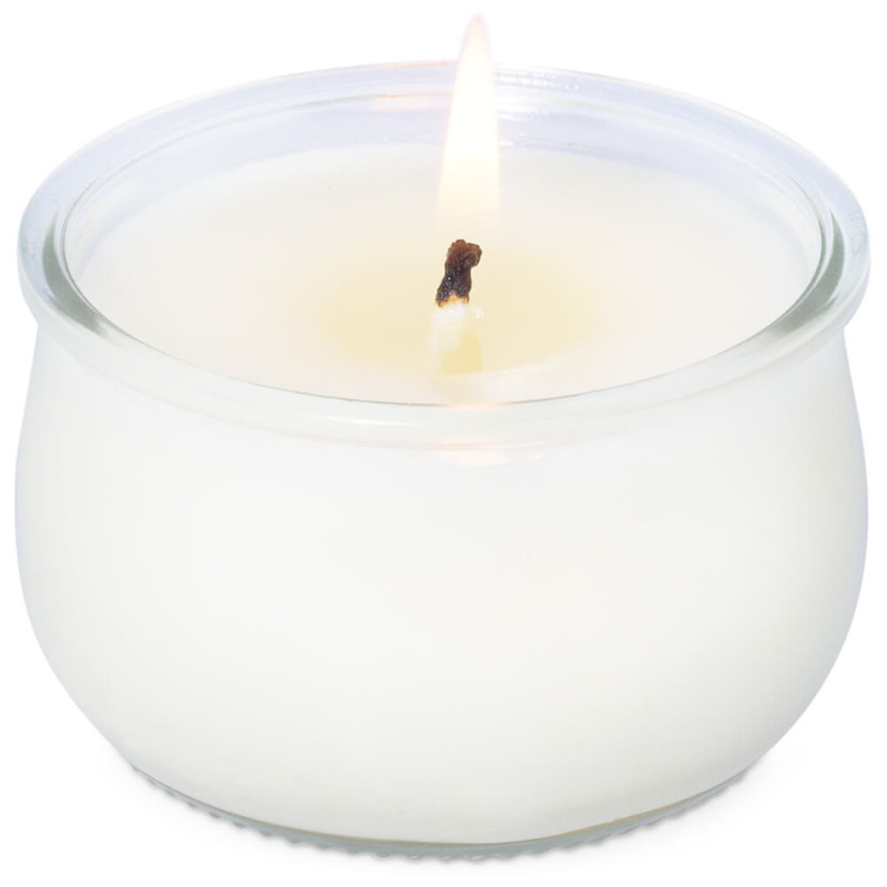 Um jedes dieser Glasgläser Joghurt zu füllen, benötigen Sie ca. 120 g Wachs. Sie müssen es nur schmelzen, aromatische Essenz und Farbe nach Geschmack hinzufügen und in den Behälter gießen, wenn es etwa 62 ° C ist.