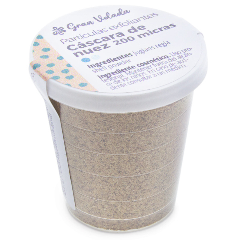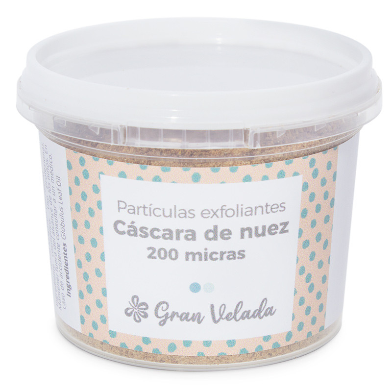 Peeling-Partikel der Walnussschale von 200 Mikrometern, ideal für Gesichtsprodukte. Sie sind rein und natürlich und mit ihnen können Sie sanfte Peelings für das Gesicht machen. Es handelt sich um ein veganes und biologisch abbaubares Produkt ohne Zusatzstoffe, das durch Mahlen und Sieben von in Spanien hergestellten Nussschalen gewonnen wird. Diese Peeling-Partikel wurden für die Verwendung in Kosmetika sterilisiert und mit ihnen können Sie Gesichtsreiniger, Peelings, Seifen ... Walnussschalen-Peeling-Partikel helfen, die Poren zu reinigen, abgestorbene Zellen zu entfernen und die Zellerneuerung zu fördern. Sie sind sehr einfach zu bedienen, da sie direkt in die Basen integriert werden können, die Sie auch in unserem Online-Shop finden. Walnussschalenpeeling ist ein sanfter und dennoch wirksamer Inhaltsstoff zum Peeling und zur Erfrischung der Haut. Holen Sie sie sich und kreieren Sie Ihre hausgemachten Peelings!