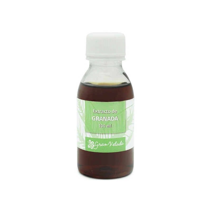 In Gran Velada können Sie Granatapfelextrakt kaufen, ein Mazerat aus den Früchten (Punica granatum L.) in Wasser und Glycerin zu gleichen Teilen. Es zeichnet sich durch seinen hohen Gehalt an Vitamin A, B und C sowie Kalium, Phosphor, Magnesium, Kalzium und Natrium aus.