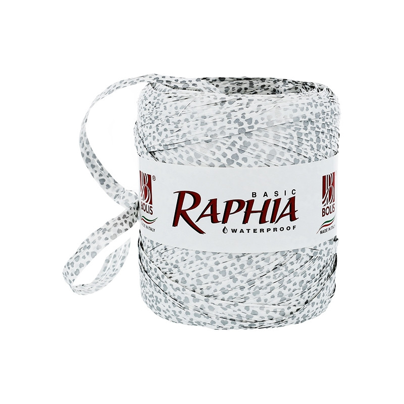Dieses Modell besteht aus synthetischem Bast und ist mit kleinen Herzen verziert. Der Druck ist in verschiedenen Farbtönen erhältlich: Violett, Silber und Pistazie. Der Hintergrund ist weiß, daher ist er ideal, um ihn mit anderen Bändern in einfarbigen Farben zu kombinieren. Sie werden in Spulen von 10, 200 oder 400 Metern verkauft.