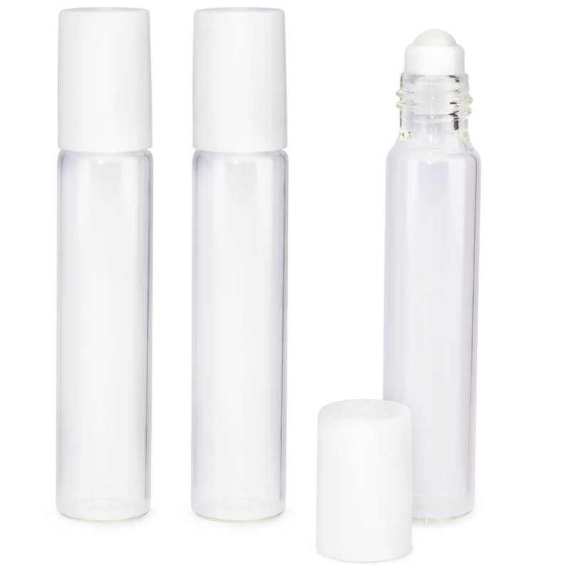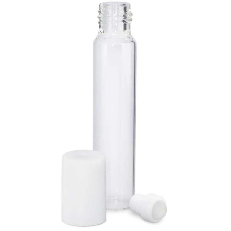 Diese Glasrollbehälter sind transparent und haben einen Schraubverschluss. Der Deckel ist schwarz und besteht aus starrem Kunststoff. Der Roll-on-Ball ist ebenfalls aus Kunststoff. Sie haben ein Fassungsvermögen von 14 ml.
