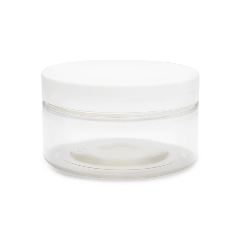 Transparenter 100-ml-Tiegel mit weißem Deckel, sehr praktisch zum Verpacken von Cremes und Kosmetika aller Art. Dank seiner flachen Form und Größe nimmt er nur wenig Platz in deiner Handtasche, deiner Kulturtasche oder deinem Koffer ein. Die Behälter werden leer verkauft und bestehen aus einem transparenten, runden Behälter mit einem weißen Schraubverschluss. Diese Kunststoffbehälter können wiederverwendet und recycelt werden.