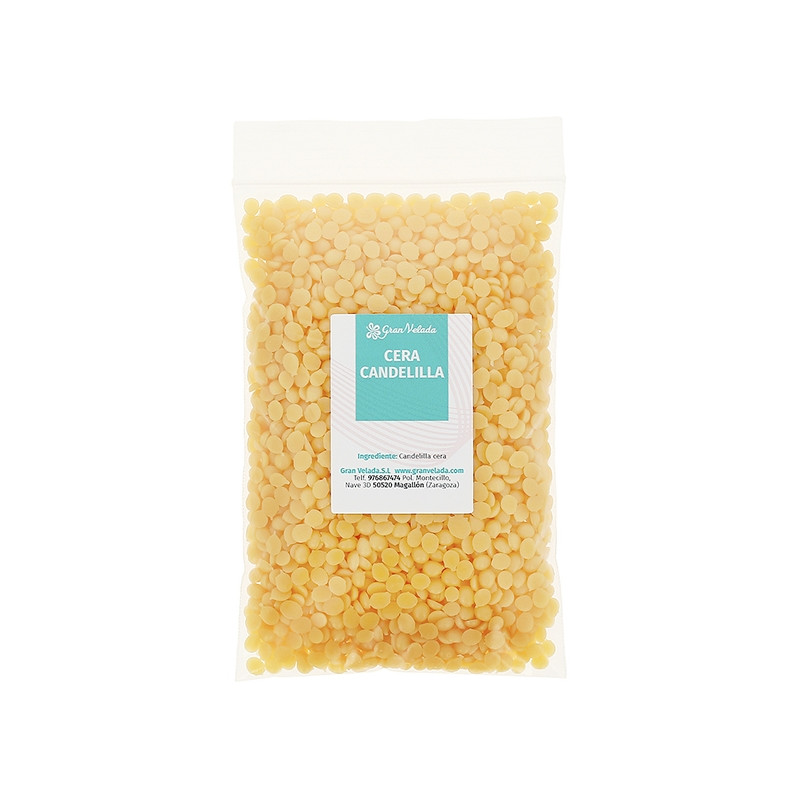Das Candelillawachs , das Sie in Gran Velada kaufen können, ist ein kosmetisches Wachs pflanzlichen Ursprungs. Es wird als Zutat bei der Formulierung einer Vielzahl von kosmetischen Produkten wie Lippenbalsamen, Cremes, Seifen ... Pflanzlichen Ursprungs zu sein, ist eine gute Alternative zu Bienenwachs in veganen Rezepten hausgemachter Kosmetik. In der Tat teilen sie viele der Eigenschaften.