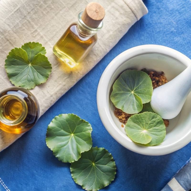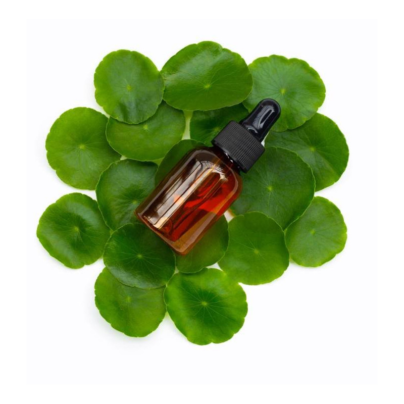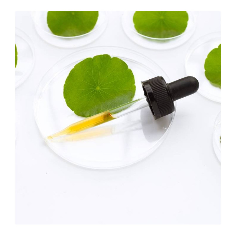 Zu den Eigenschaften von Centella Asiatica-Öl gehört auch seine Heilkraft, ein Vorteil, der es ideal für die Formulierung von Kosmetika mit Aktivität gegen Dehnungsstreifen macht.