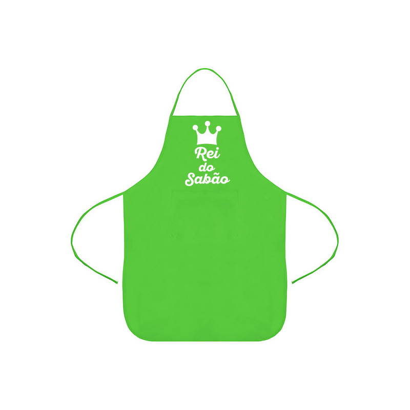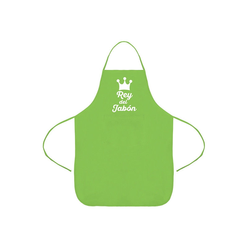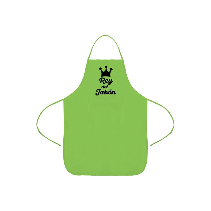 Wenn Sie alle mit originellen und exklusiven Schürzen überraschen möchten, dürfen Sie dieses Modell nicht verpassen. Eine grüne Schürze mit einer breiten Tasche in der Mitte, die mit dem Satz "King of Soap" verziert ist.