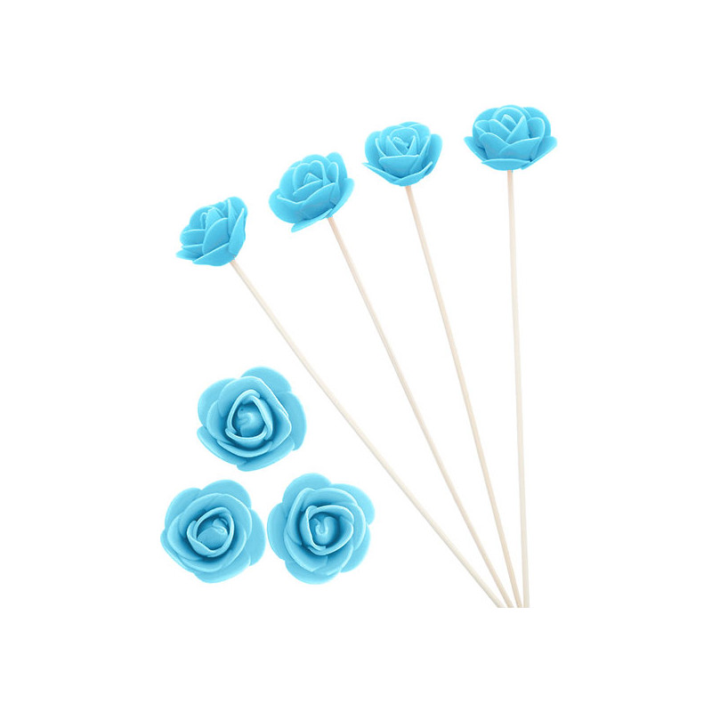 Elegantné a veľmi dekoratívne kvetinové tyčinky mikado. Sú to absorpčné tyčinky s kvetmi rozptyľujúce arómu pre mikádo, zložené z tyčinky z ratanového dreva zakončenej penovou ružou tyrkysovej farby. Najcharakteristickejšou vlastnosťou difuzérov s kvetmi je, že práve kvety sú zodpovedné za šírenie vône mikáda. Tyčinka je napustená esenciou, ktorá sa dostane až ku kvetu, a tým sa aróma udrží dlhšie. Vďaka atraktívnemu tvaru ruží sú ideálne na vytváranie dekoratívnych mikád. Ratanové tyčinky mikádo s kvetmi sú k dispozícii v rôznych farbách. Predávajú sa po jednom kuse.