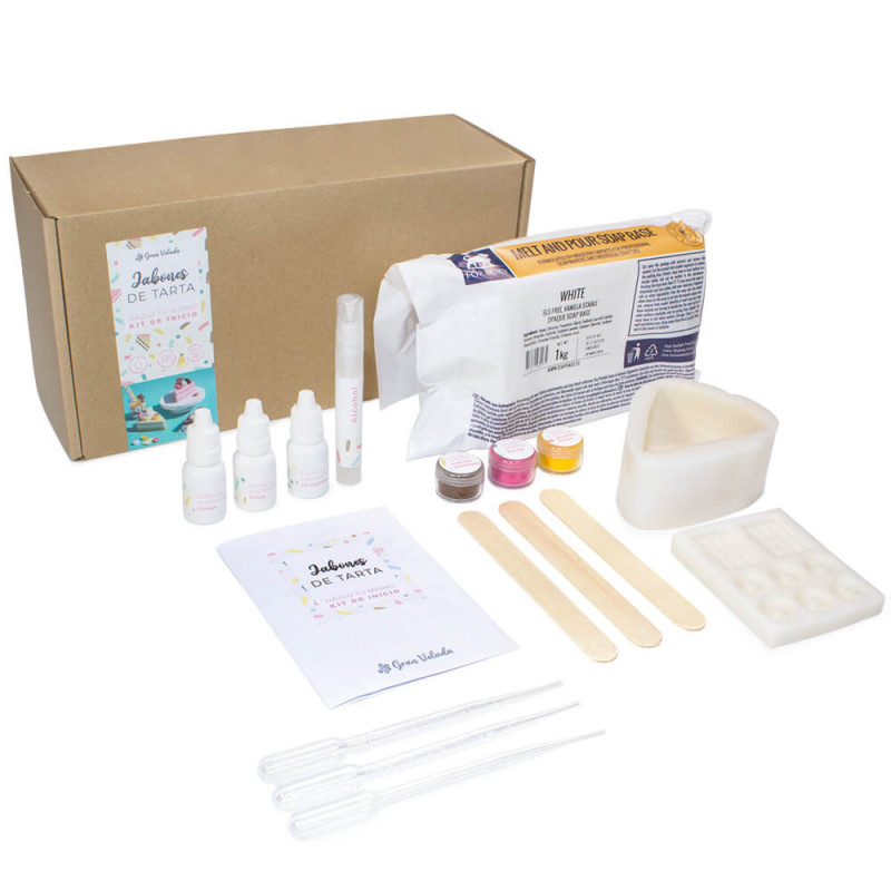 Nauč sa vyrábať tortové mydlá s touto súpravou, ktorá obsahuje všetko, čo potrebuješ! Obsahuje potrebný materiál a vytlačený návod. Je to jednoduché a veľmi zábavné! S touto sadou si môžeš vyrobiť 5 porcií mydlovej torty: čokoládovú, jahodovú a citrónovú tortu. Nájdeš v nej mydlový základ, rôzne farbivá, vonné esencie, formy... Skrátka všetko, čo budeš potrebovať na ich výrobu v pohodlí domova. Kúp si túto súpravu hneď a nauč sa vyrábať mydlá v tvare torty! Môže poslúžiť aj ako darček pre milovníkov ručnej výroby.